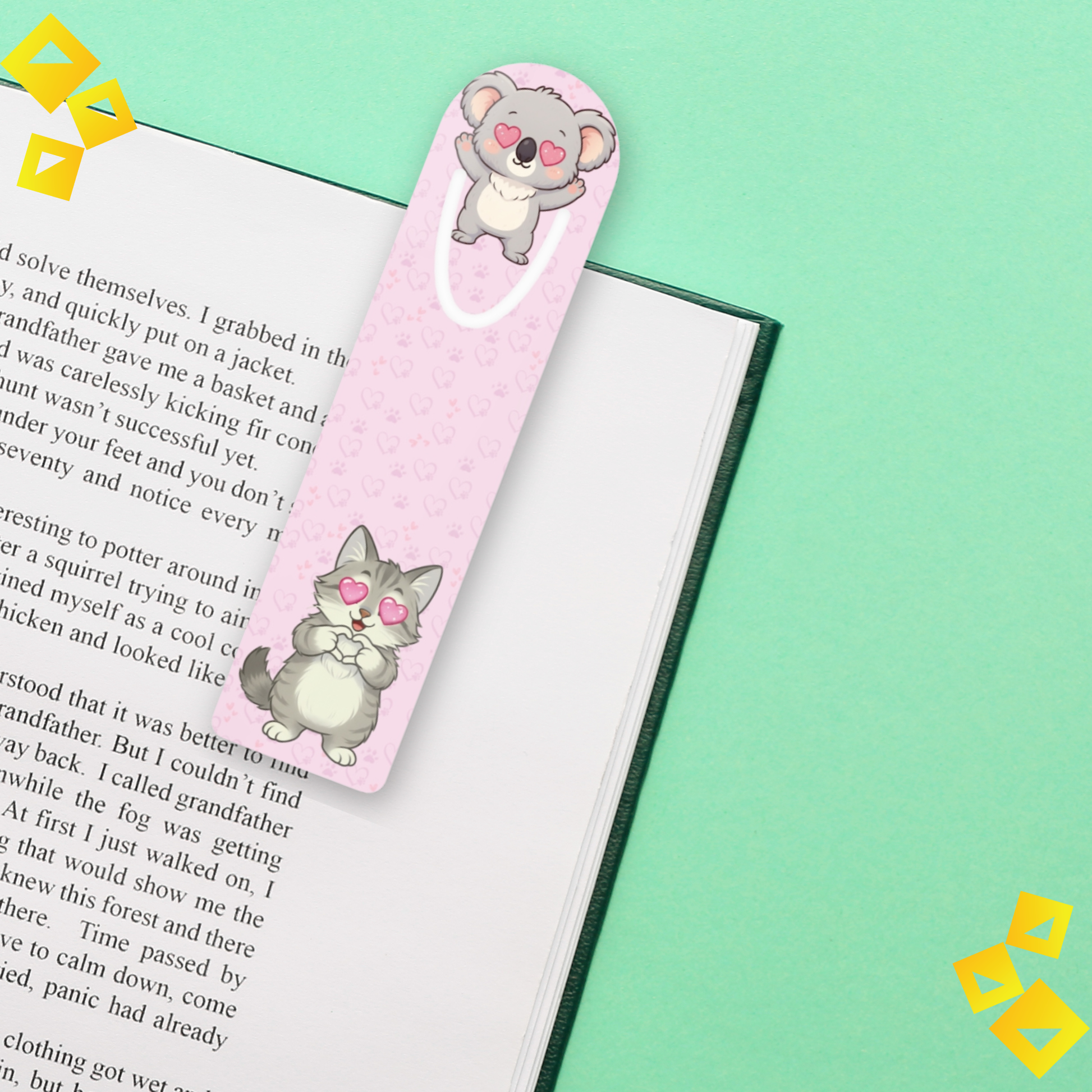 Bookmark - Cute Koala & Cat Heart Eyes - Pastel Animal Bookmark for Book Lovers - Sweet Reader Gift for Cozy Reading Time