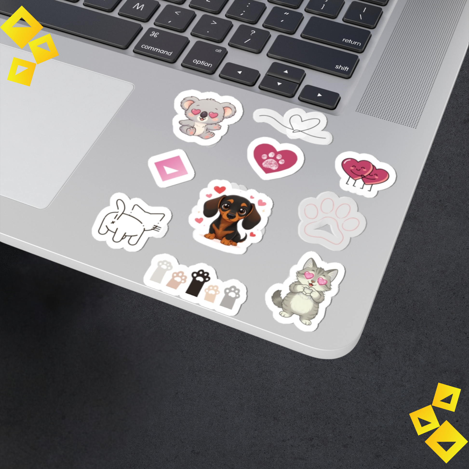 Kiss-Cut Stickers - Cute Animal Love Stickers - Koala Dog Cat Heart Stickers - Pastel Vinyl Stickers for Journals, Laptops & Gifts